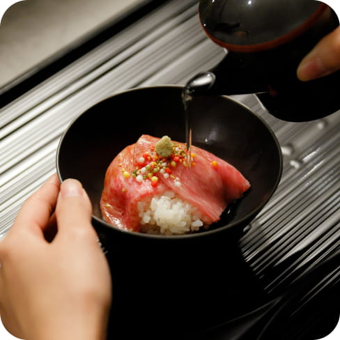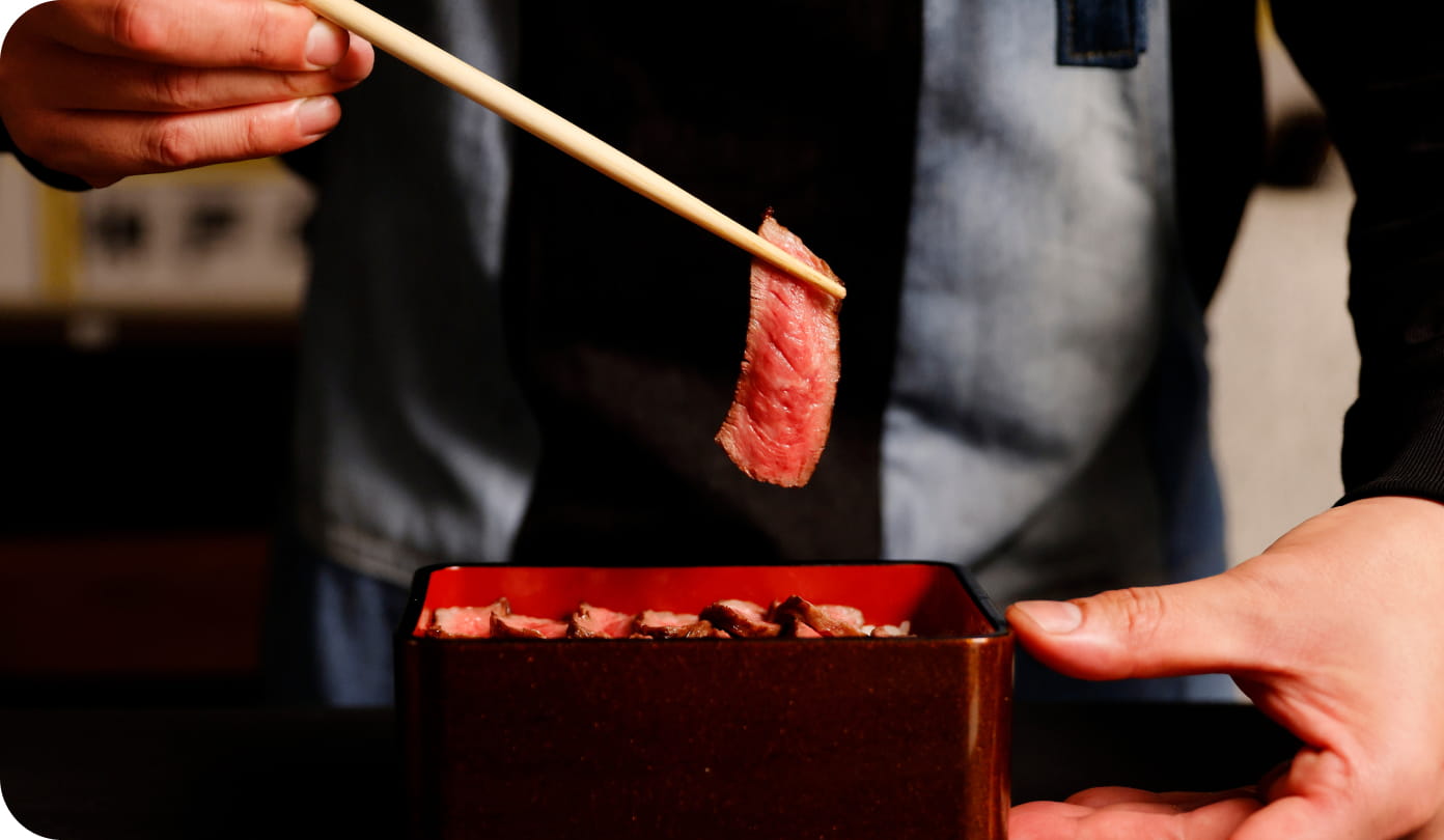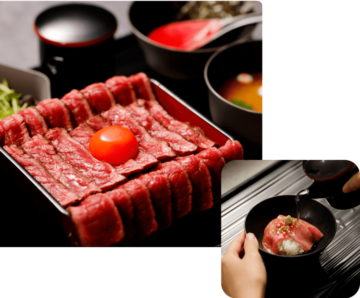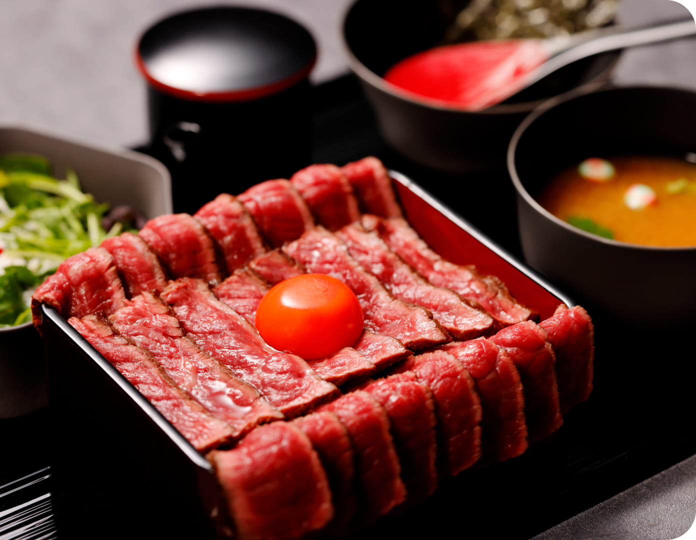 のりちゃん、能登牛の肉カットにこだわり。肉重定食が自慢。お肉のカットには独自のこだわりを持ち、手作りの醤油麹や酵素シロップも必食。健康と美味しさの調和が魅力。のりちゃんで、こだわりの味わいをご堪能ください。ダミーテキスト